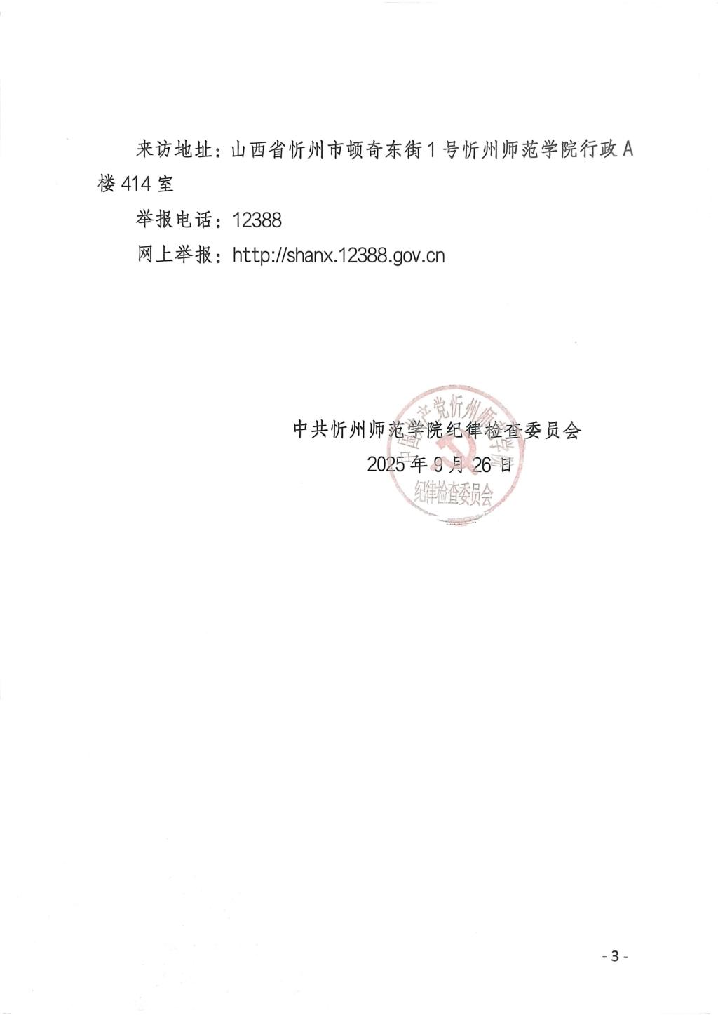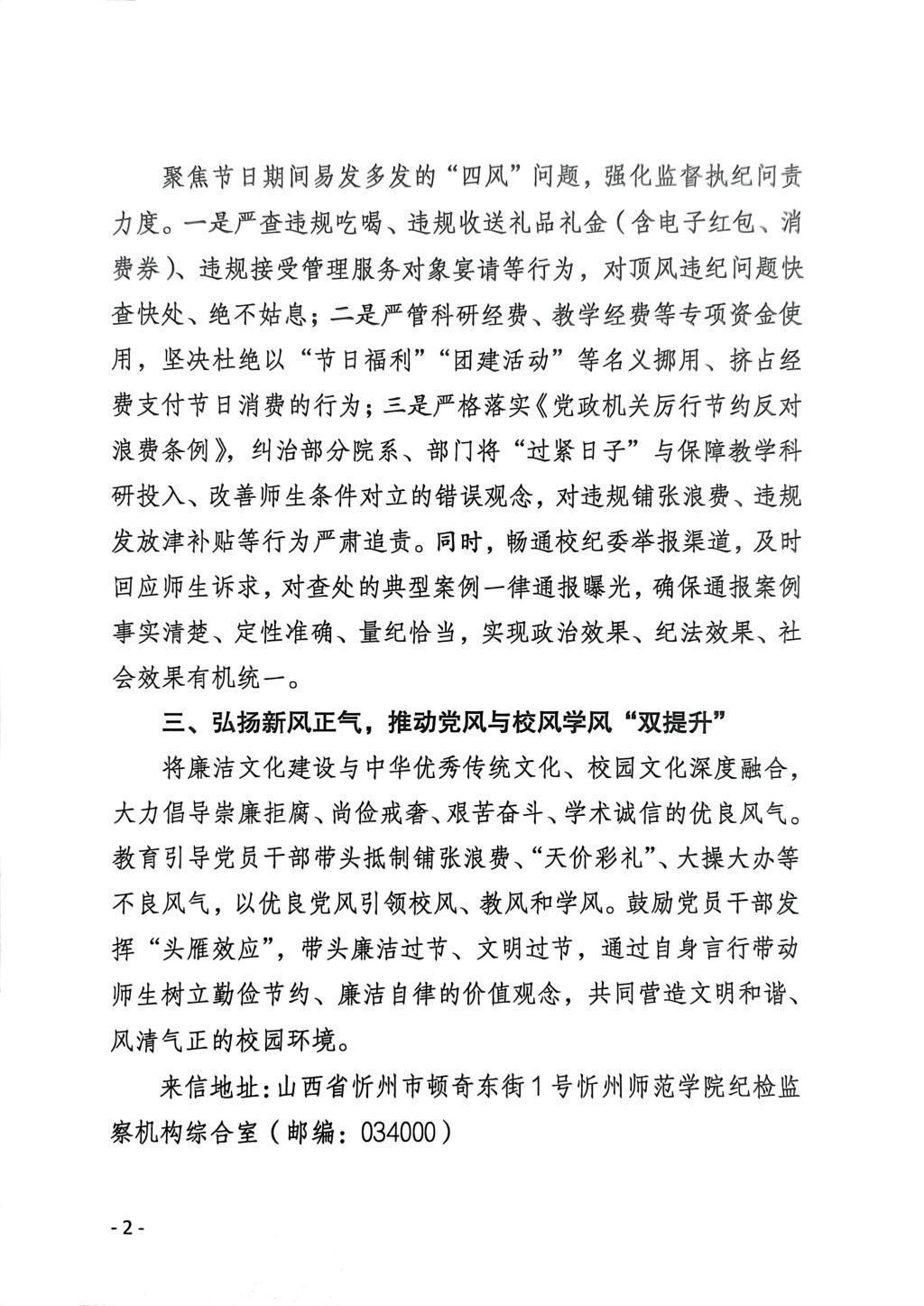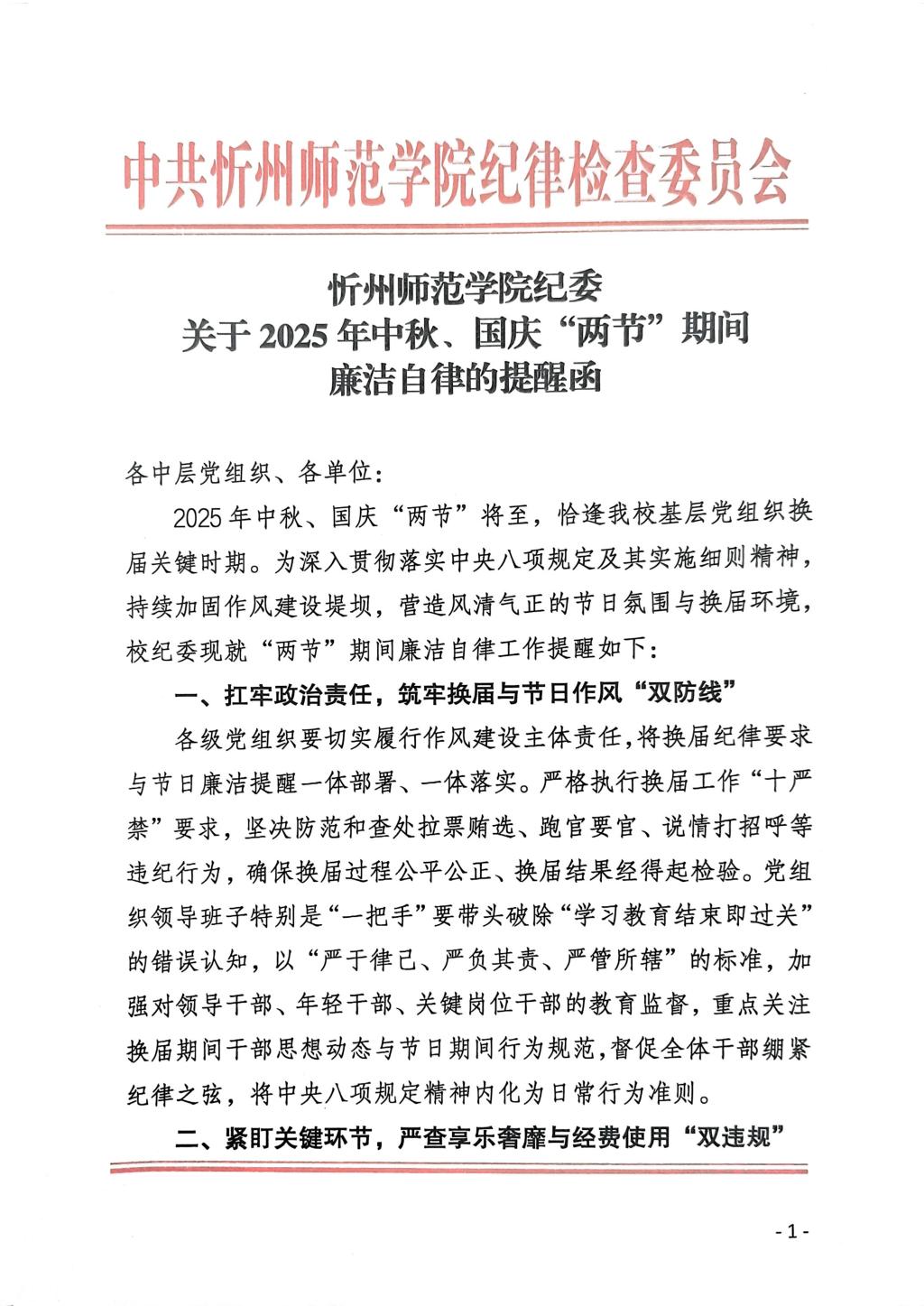 忻州师范学院纪委关于2025年中秋、国庆“两节”期间廉洁自律的提醒函